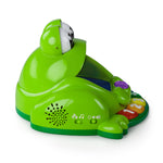 This fascinating frog will make a splash at playtime! Feed balls into the frogs mouth and watch them bounce around and jump back out! Pop & Giggle Pond Pal™ from Bright Starts™ will have baby laughing out loud as crazy balls bounce around a trampoline inside this friendly frog's mouth. Feed the balls to the frog, press the button and the ball-popping action begins! 5 buttons introduce colors and numbers along with silly sounds and melodies. Includes 6 balls, but more can be purchased from the Bright Starts Having a Ball Collection™.