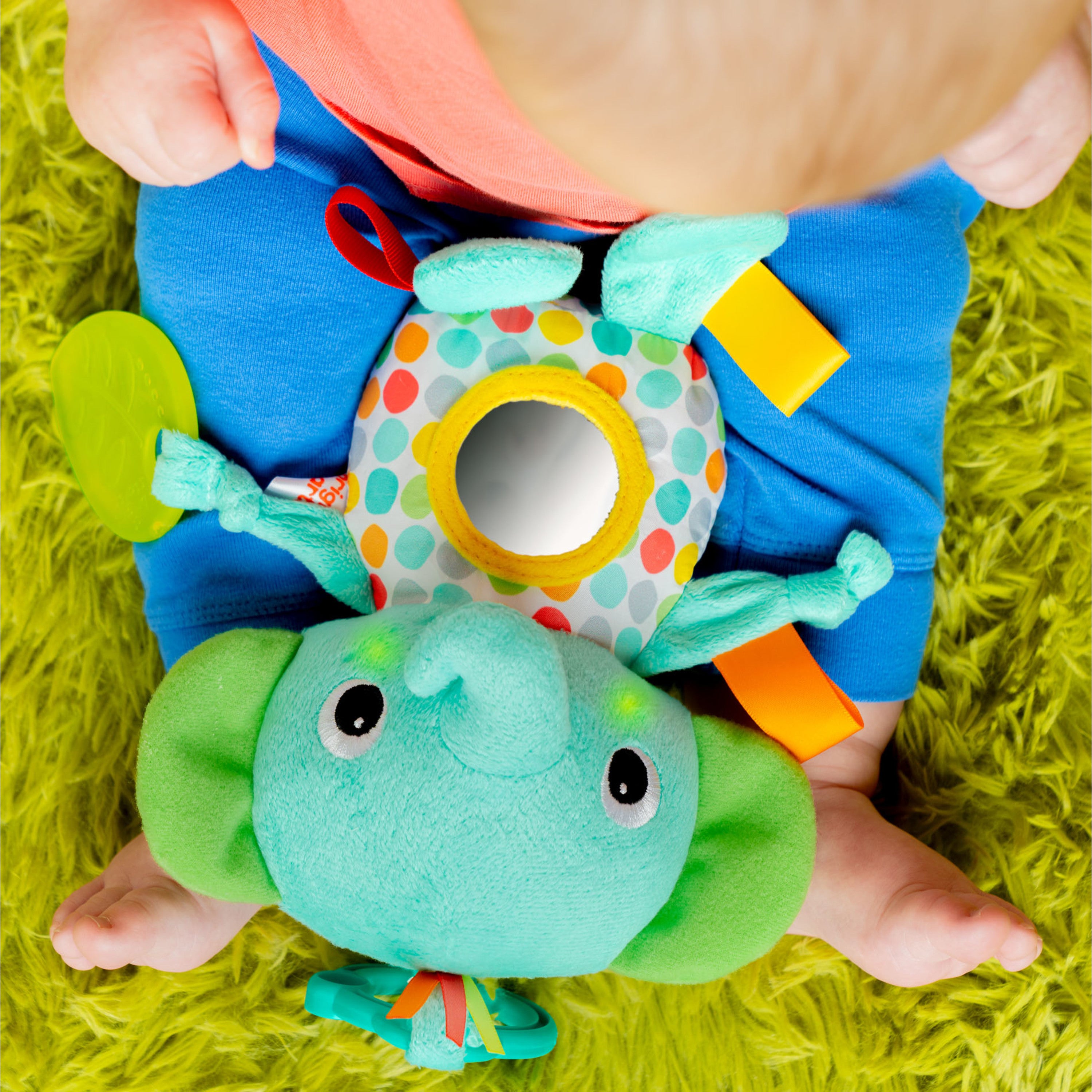 - Colorful elephant character will engage baby during early months and beyond; made with mixed fabrics that are soft to baby's touch and encourage tactile exploration