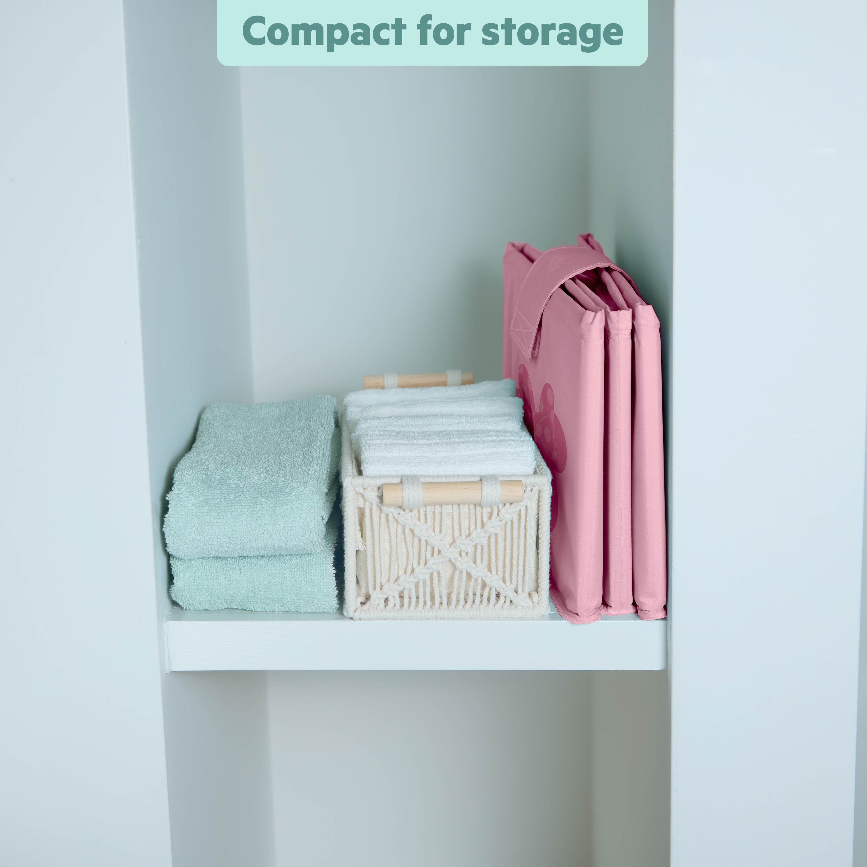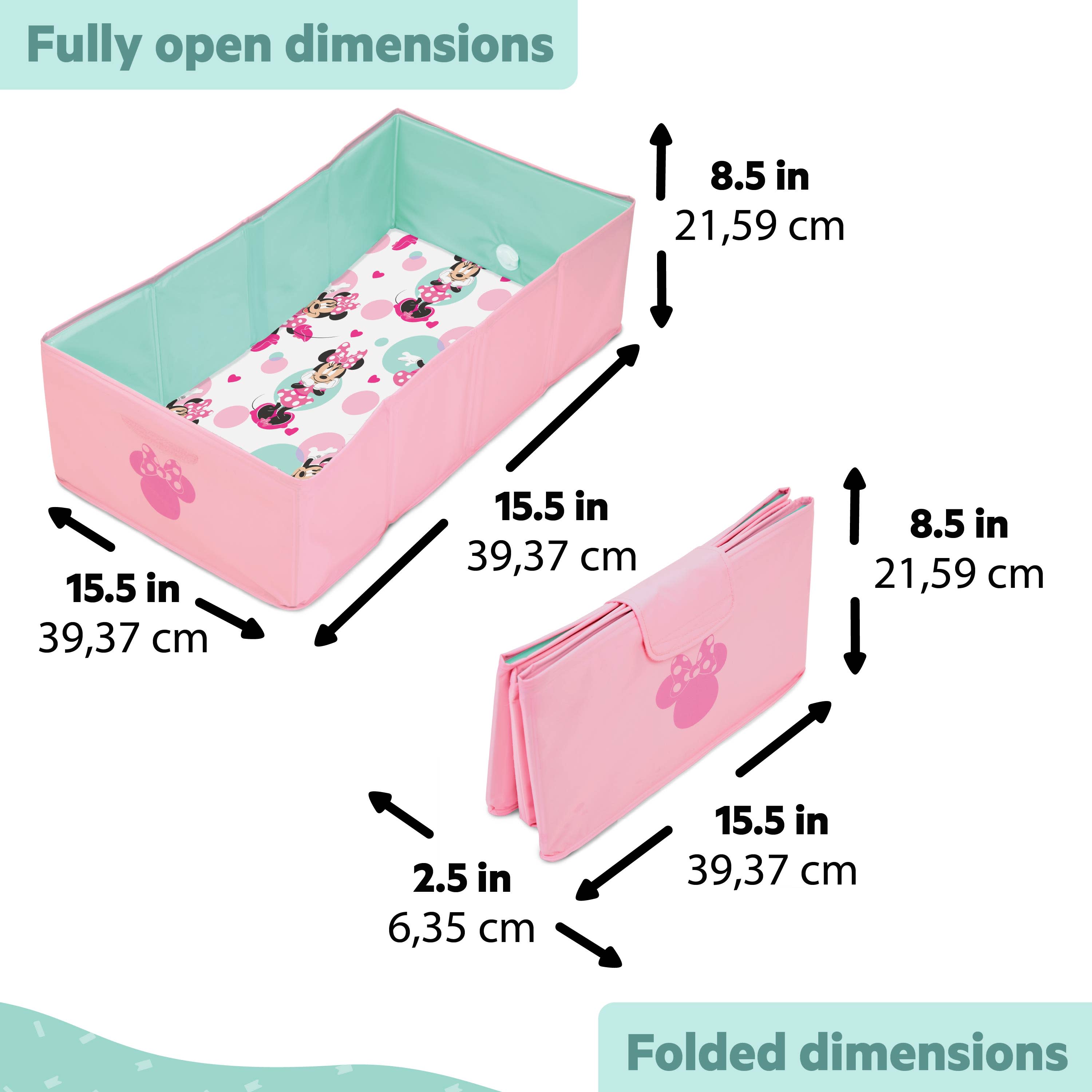 Magically transform any shower into a bathtub with the Disney Baby Minnie Mouse Tuckaway Travel Tub by Bright Starts! Simply unfold this adorable Minnie Mouse themed tub in any shower at home or away, fill it with water, and help your kiddo get clean in their own safe, comfy spot! Traveling? No problem. Camping? Use the tub inside or in the great outdoors! This waterproof lined tub unfolds to reveal a sweet Minnie Mouse design and plenty of room for babies 12 months old to kids up to 5 years old. When bathtime is over, simply fold the travel tub for storage. When fully open, the full size baby bathtub is 30" L x 15.5" W x 8.5" H. When folded, it's almost completely flat! With a max fill line to keep an eye on water levels and a drain plug for quick release, it's easy to keep baby safe as you help them enjoy bath time. The baby tub's waterproof lining is easy to clean and dries quickly, so you can return your shower to normal just moments later. Give your little one a spacious tub all their own with Minnie Mouse!