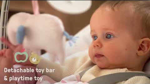 - Soothing vibrations help to keep baby calm; includes 1 detachable plush elephant playtime toy for entertaining and to practice reaching and grasping; vibrations powered by 1 C battery (not included)