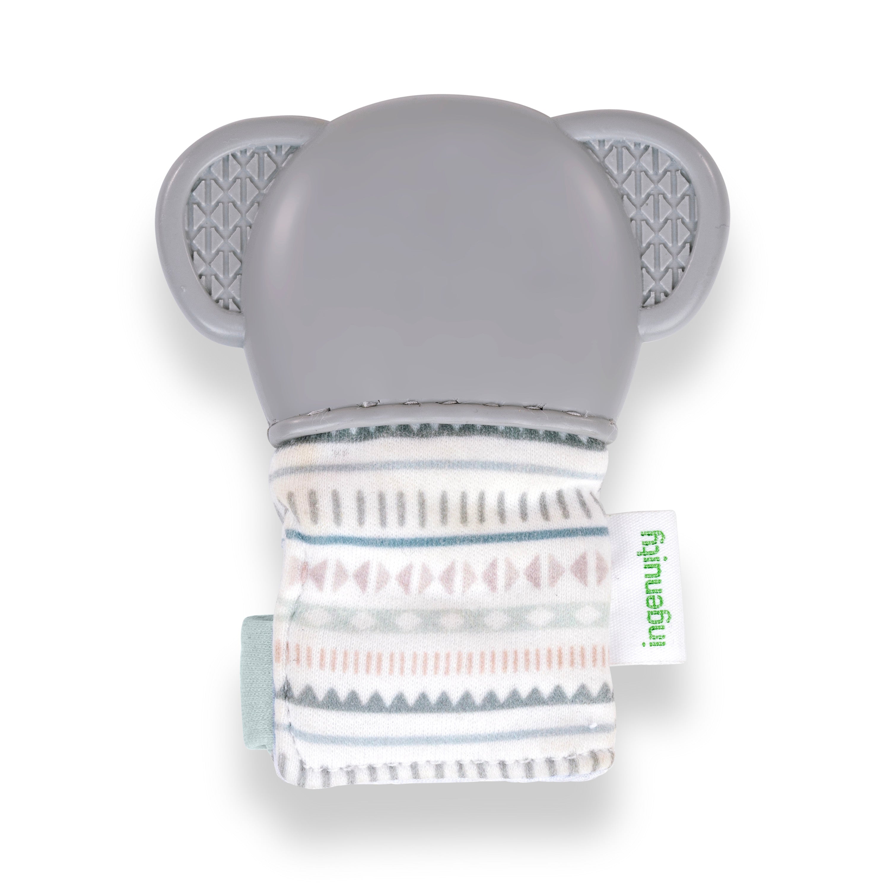 Need to calm fussy baby? No problem. The Ingenuity Van Teething Mitt & Rattle soothes your little one's gummy nibbles and entertains with gentle rattle sounds. The elephant-shaped teething mitt is crafted with silicone, safe for your tiny tot's mouth. The teething mitt massages sore gums and provides relief to emerging teeth. Van the elephant character goes from teether to entertainer with baby's movements. With every wiggle and crawl, the soft rattle sounds will keep baby engaged and calm. As baby grows, the mitt and rattle will stay along for the journey! The adjustable strap attachment on Van helps ensure a secure, comfortable fit on baby's wrist. The mitt easily wipes clean with a damp cloth - making it ideal for entertaining at home or on the go. Featuring earthy hues and gender-neutral Van the elephant, this mitt is perfect for babies ages 3 months and up, and complements nursery décor.