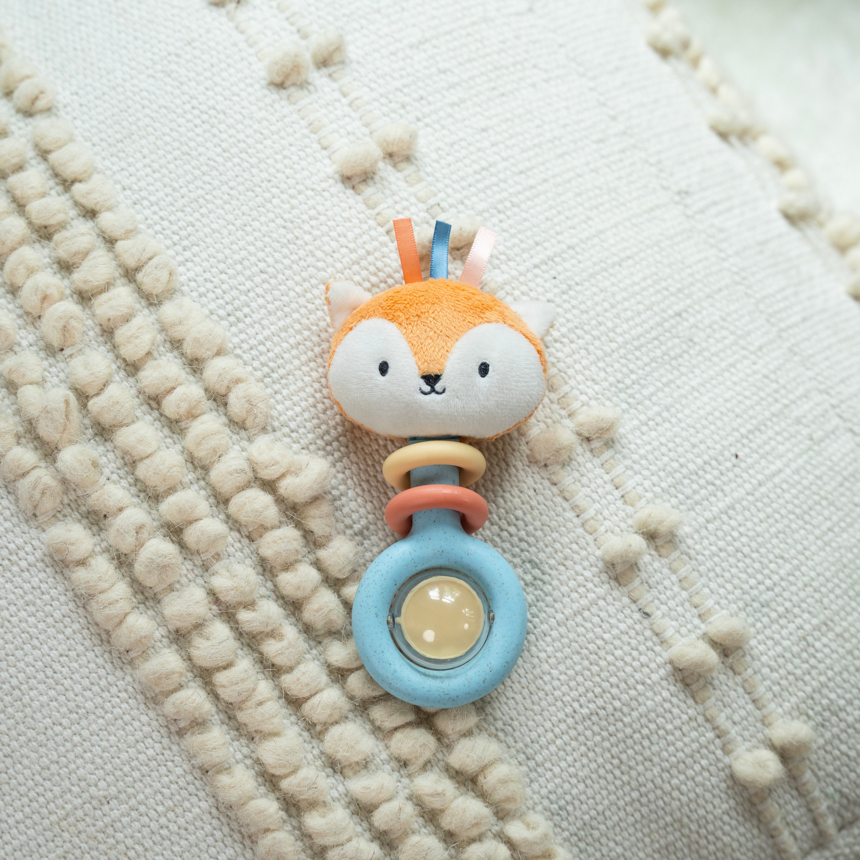 Mommas and papas know the best way to soothe their precious kit (baby fox) is with love - and rattles! The Ingenuity Kitt Ring Rattle made with 30% plant-based plastics, safe for baby. Crafted with premium materials, this rattle soothes baby with gentle sounds. The lightweight rattle is designed specially for your kitt's adorable, tiny hands. The easy-to-grasp rattle is topped with Ingenuity's favorite fox, the soft and plush Kitt. Fun fact: Shaking rattles are among the milestones for children age 3-6 months. So, this special rattle encourages baby's learning of cause and effect, plus discovery of tactile perception and fine motor skills. This ring rattle is ideal for engaging in play at home or on the go. Plus, the rattle easily wipes clean with a damp cloth. Charming Kitt the fox is gender-neutral and perfect for children age 0-36 months. Kitt is a fit for your child's list of playtime essentials!
