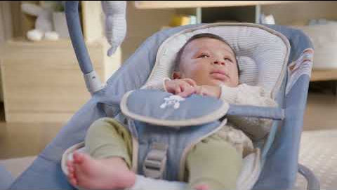 A happy belly = a happy baby! The first-ever, patent-pending Ingenuity Happy Belly Rock-to-Bounce Massage Seat - Chambray has integrated belly massage technology offering a circular massage motion to help soothe baby and provide relief from discomfort. Designed in the USA with expert-led medical advice, this seat’s belly massage rollers resemble a gentle fingertip massage and are safely activated by a parent's push of a button and turn off automatically after 3 minutes of massage. A GentleTouch control pad operates 20 melodies, nature sounds, vibrations and massage to easily keep baby entertained; 3C batteries required. This seat from the #1 Manufacturer of Bouncers* converts from a bouncer to rocking seat and offers a plush infant insert and 5-point harness to keep baby comfy and safe. Folds flat for easy storage. Includes easy-carry travel bag. Detachable toy bar with a soft, plush Casi the Zebra character toy. For ages 0-6 months or up to 20 pounds, whichever comes first. Assembled dimensions are 27.4'' x 16'' x 22''. Third party safety tested and approved. From the #1 Manufacturer of Bouncers* (*Circana, US Dollar Sales, Jan-Dec ‘24)
