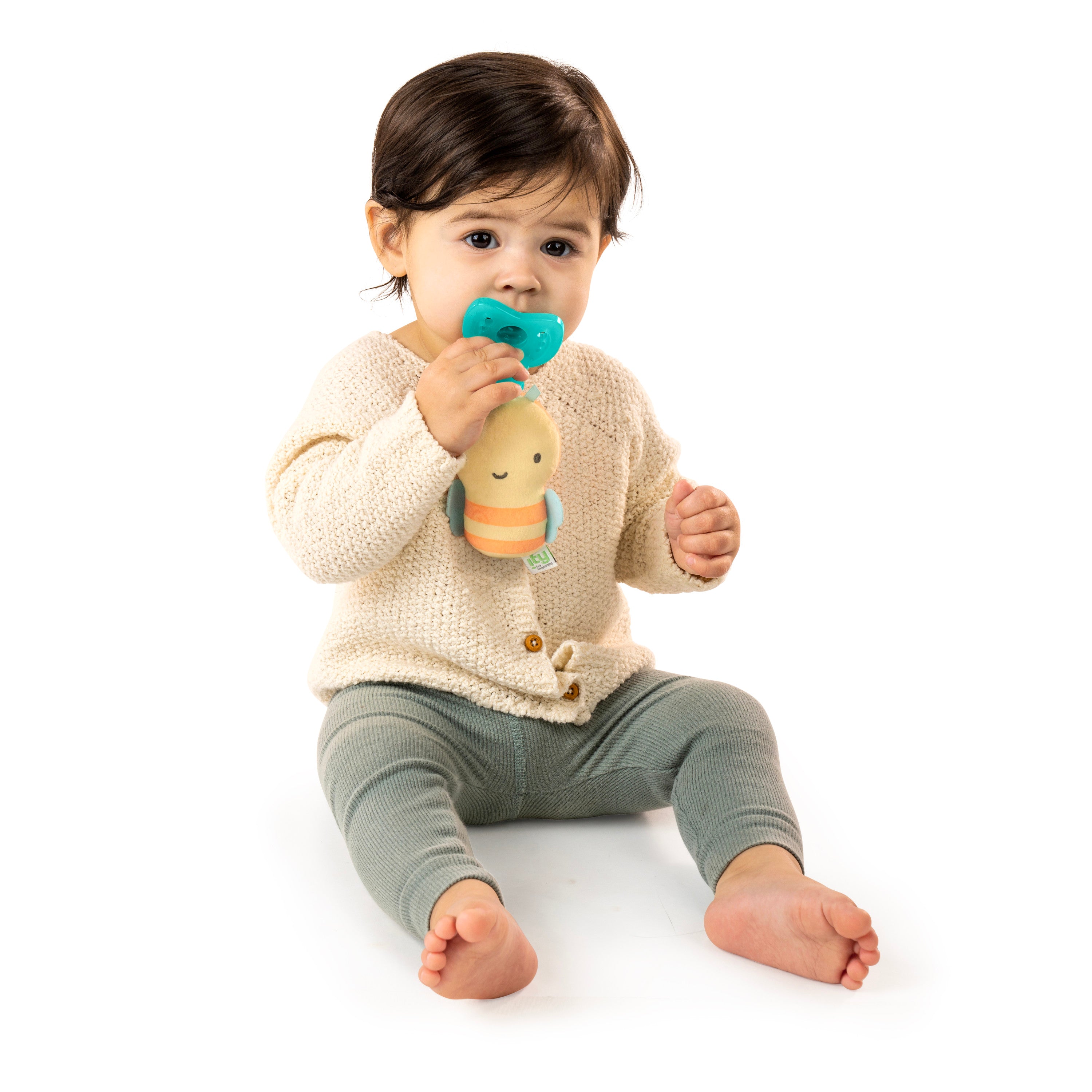 - Ditch a traditional pacifier for the super-cute woodland creature-meets-comforter with ity by Ingenuity's Cozy Coo - Bomby! This soothing pacifier features soft plush Bomby the bumblebee