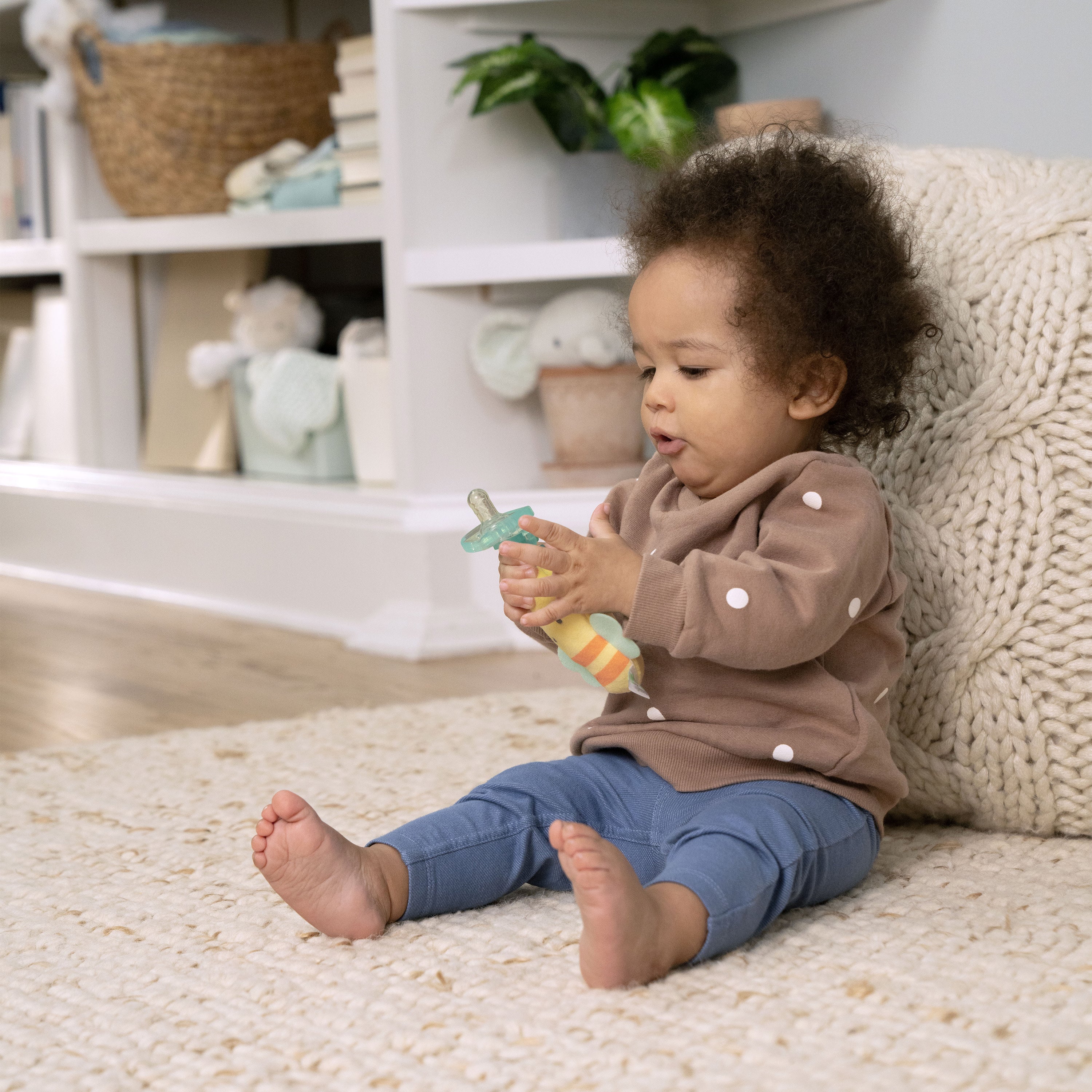 Ditch a traditional pacifier for the super-cute woodland creature-meets-comforter with ity by Ingenuity's Cozy Coo - Bomby! This soothing pacifier features plush Nally the owl, soft to baby's gentle touch. The Cozy Coo is easy for baby's little hands to hold and encourages self-soothing. Bomby will easily become the adorable family member baby will recognize and associate with comfort. We know keeping baby away from harmful materials is important. So, we made the Cozy Coo with silicone that's safe for baby to self-soothe. You can keep baby comforted at home or while on the go conquering your to-do list! This compact pacifier can be carried in a diaper bag or purse. Wipe pacifier and plush Bomby clean before use. Bomby is part of a collection of fun ity by Ingenuity characters and pairs well with fellow Cozy Coo character Nally the Owl. Both Bomby and Nally are gender-neutral, the perfect gifts for precious baby age newborn and up.