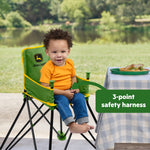 Mealtime is more fun with the John Deere Pop ‘N Dine from Bright Starts! Perfect for your little farmer on the go, this portable high chair is ready for any adventure - whether it’s sideline snacks at the big game, a backyard picnic, or a trip to Grandma’s house. With its easy-clean design, dishwasher-safe tray, and handy rear storage pocket, you’ll plow through messes and keep everything tidy in a snap. When hunger calls, this high chair pops open in seconds and folds back up just as quickly! Wipe-clean carry bag included for easy portability. Built for babies and toddlers 6 months and up (and up to 33 pounds), it keeps your little one secure with a 3-point safety harness. The classic green and yellow design brings a touch of John Deere charm to every meal, indoors or outdoors.