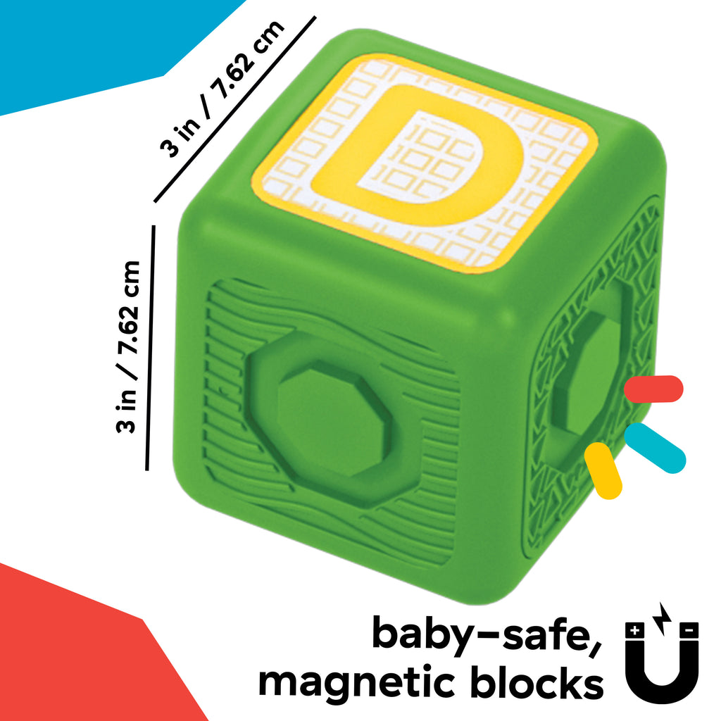 - Highly giftable, unisex, perfect for floor or table play, and does not require batteries. Blocks wipe clean. Collect all Connectables sets to expand building options and designs as baby grows – 76 total pieces across 5 sets!