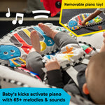 - Detachable piano toy engages baby as they swing or play on the go; baby’s kicks or taps are rewarded with dancing lights and 56 melodies and sounds
