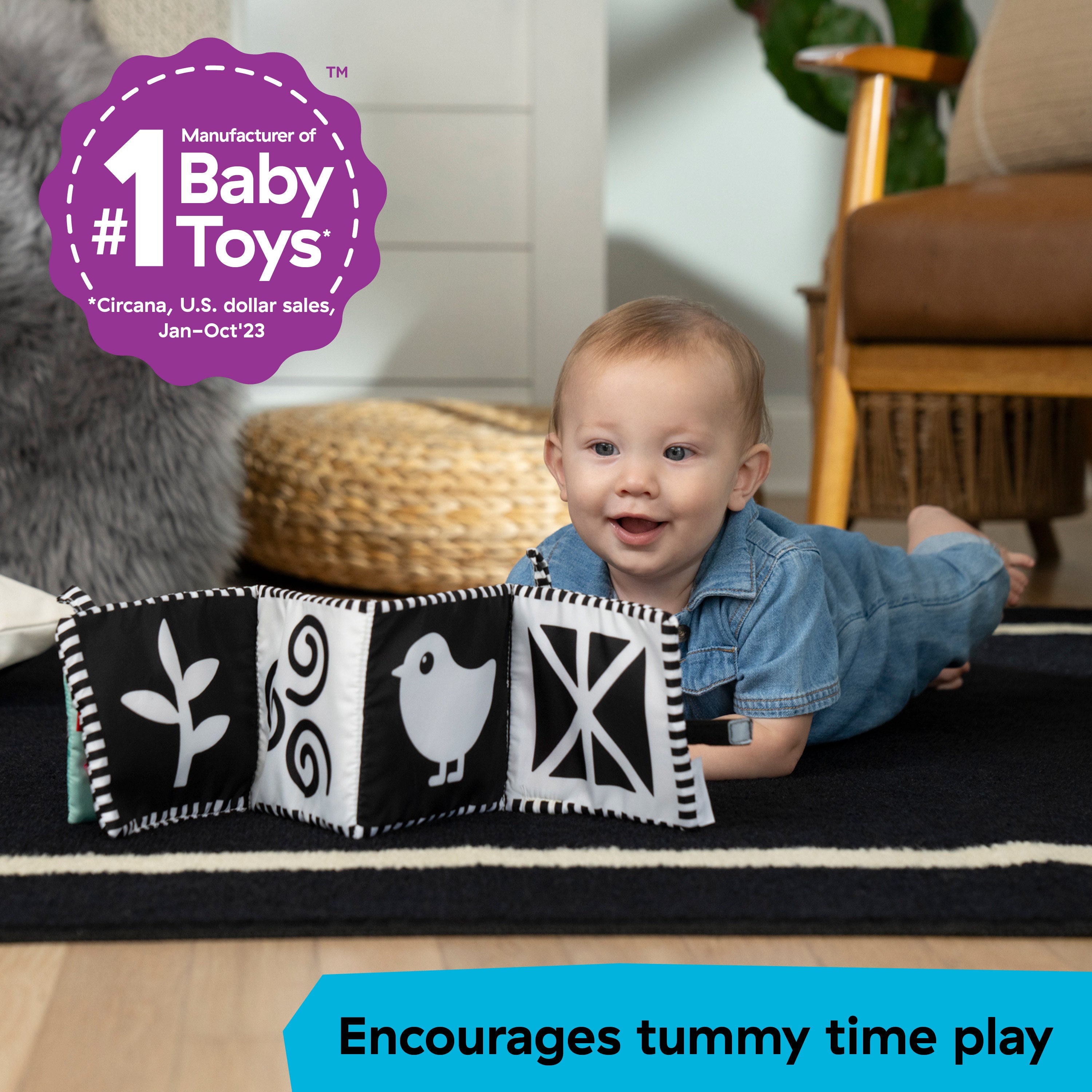 - Use 2 ways to grow with baby: Unfold the soft panels to stand the book upright for tummy time engagement or fold to hold and explore sensory features; for infants ages 0+ months