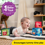 - Blocks feature multisensory details to engage baby’s eyes, ears, and fingers; soft blocks are easy for baby to grasp and squeeze and feature bright colors, unique textures, and engaging sounds like chimes and rattle sounds