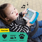 Keep your baby calm and entertained at home or on-the-go with the Baby Einstein On-the-Go Sea Dreams Soother. Featuring 15+ minutes of engaging lights, dancing characters, and classical melodies, this portable soother from the #1 Manufacturer of Baby Toys* features 4 modes for screen-free fun and soothing wherever you go. Modes: upbeat melodies, soothing, ocean sounds, and underwater sounds. Lights gently pulse to the music. Clip to your baby’s stroller or use the kickstand to place the soother on a tabletop while dining out. Easy-grasp handles let toddlers carry and interact with the soother. Requires 3 AA batteries. Wipes clean. Dimensions: 1.79 x 8.09 x 5.18 inches. For ages 0+ months. (*Circana US dollar sales, Jan-Dec 2024)