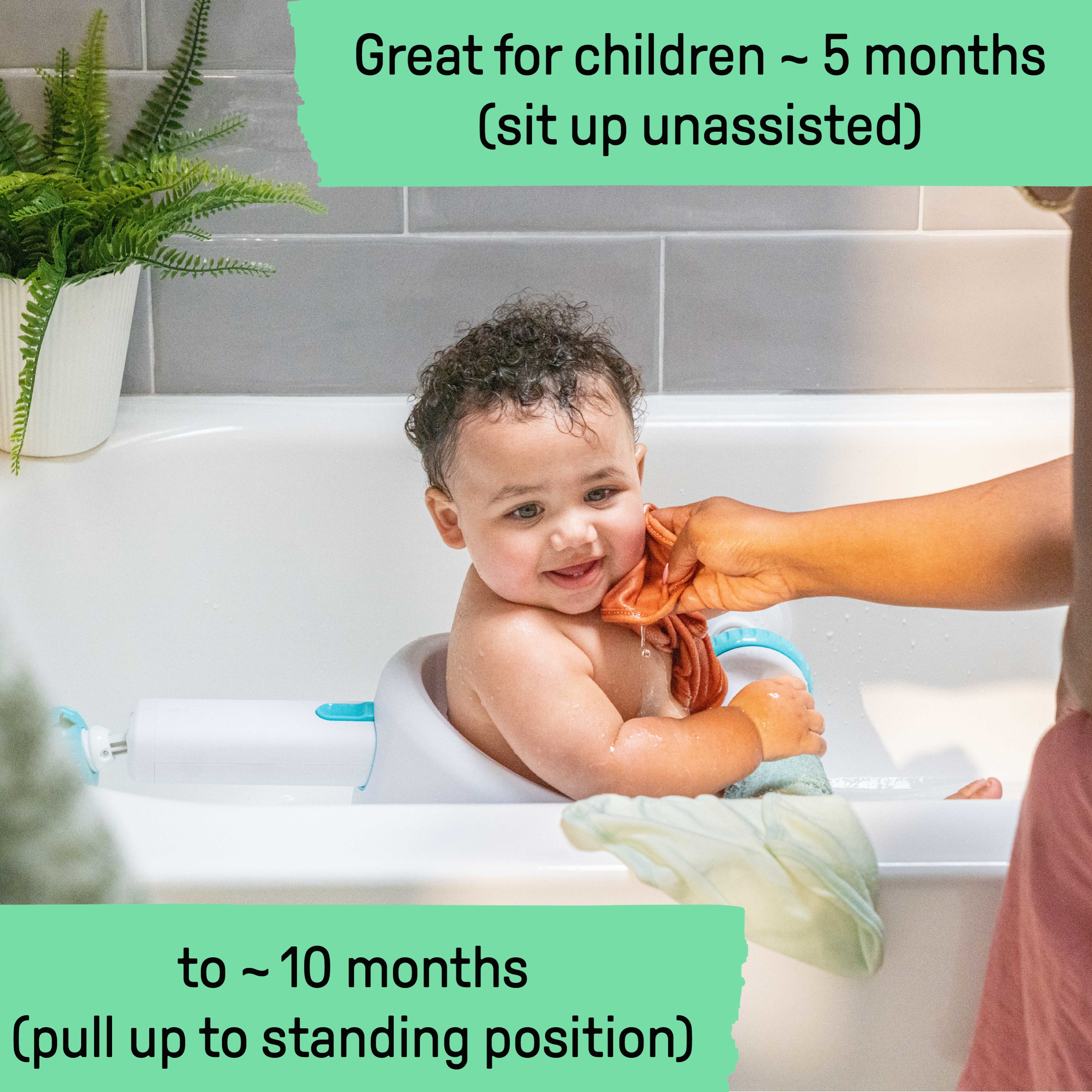 The top selling Ingenuity My Bath Seat is a one-of-a-kind, in-tub support seat designed to be your extra set of hands when you need it most. Perfect for increasingly mobile little ones that are transitioning to using an adult tub, this patented and convenient baby bath seat has 3 sturdy arms and 360 degrees of support. Designed by a Top Manufacturer of Bathtubs and Bath Accessories,* the seat’s high backrest and spacious seat frame help keep baby securely in place, freeing up your hands to scrub and play. The Sure & Secure Suction Cups on each of the chair’s arms create a stable and safe design, allowing you to easily set up, remove, and store the seat. For babies approximately 5 to 10 months of age, who can sit up unassisted but are unable to pull up to standing. For use with standard, rectangular tubs 21-24 inches wide. Clean with warm water and mild soap after each use. Not for use as a safety device; always keep baby within adult’s reach. Third party safety tested and approved. (*Circana, Retailer Tracking Service, U.S., Bathtubs and Bath Accessories, Ranked #2, dollar sales, YTD November 2023)
