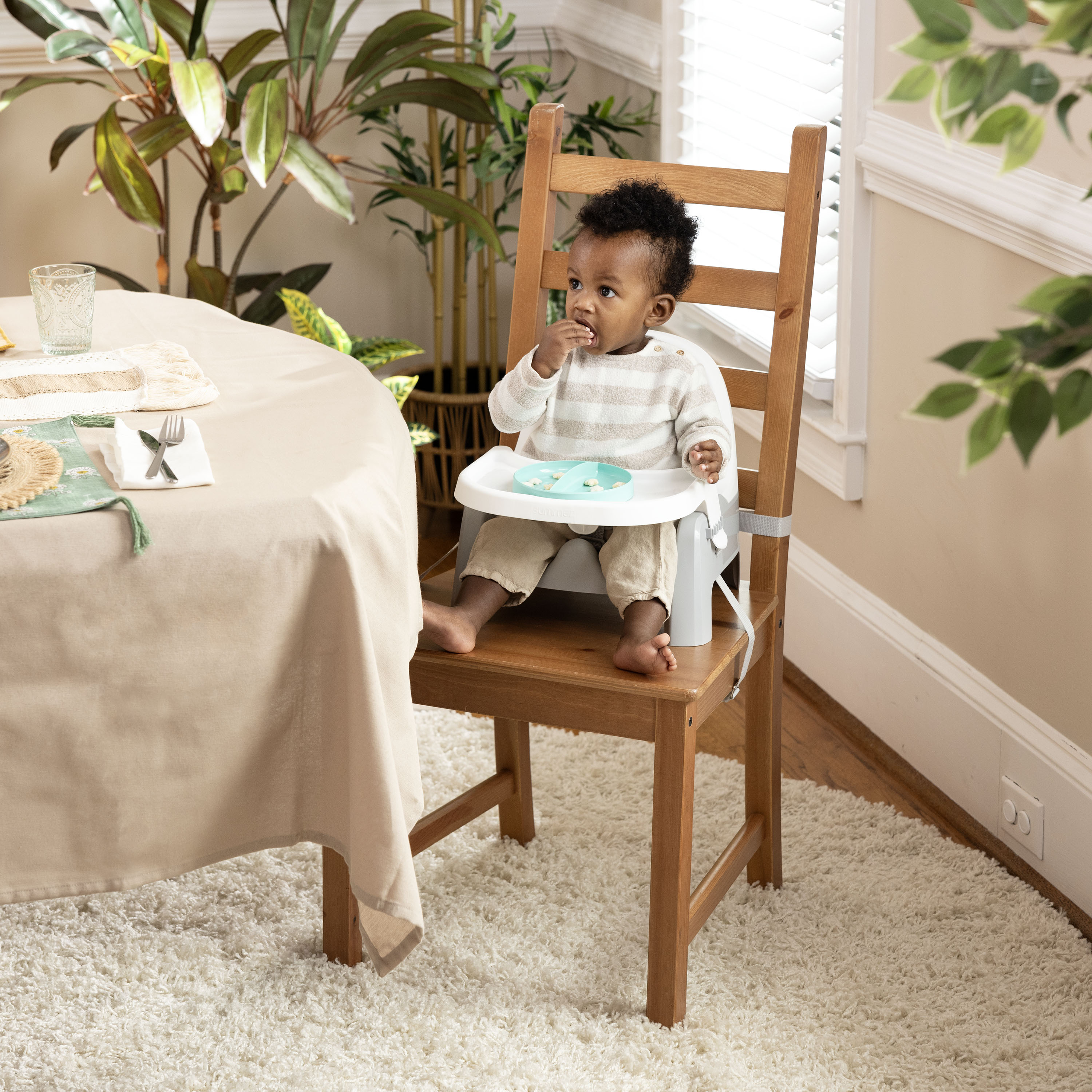 All parents love to see baby eating but hate to clean up the mess. The Ingenuity Deluxe Learn-to-Dine Feeding Seat is a 2-in-1 chair that offers lock-in Twist & Dine trays to make mealtime less messy and more enjoyable for everyone. Created by the #1 Manufacturer of Feeding boosters*, this best-selling chair features 2 microwave-safe plates that lock into place so baby is unable to push them off the tray. The baby booster mode supports baby as they first begin to eat solid meals. The toddler booster mode lets baby sit at the table with the rest of the family, without taking up the space of a traditional highchair. A 3-point harness keeps baby secure as they eat. Tray and plates are dishwasher safe for fast and easy cleaning. A great gift for new parents. No tools required for assembly. Third party safety tested and approved.(*Circana, LLC, Retail Tracking Service, US, Highchairs, Boosters, Dollar Sales, January - December 2024)