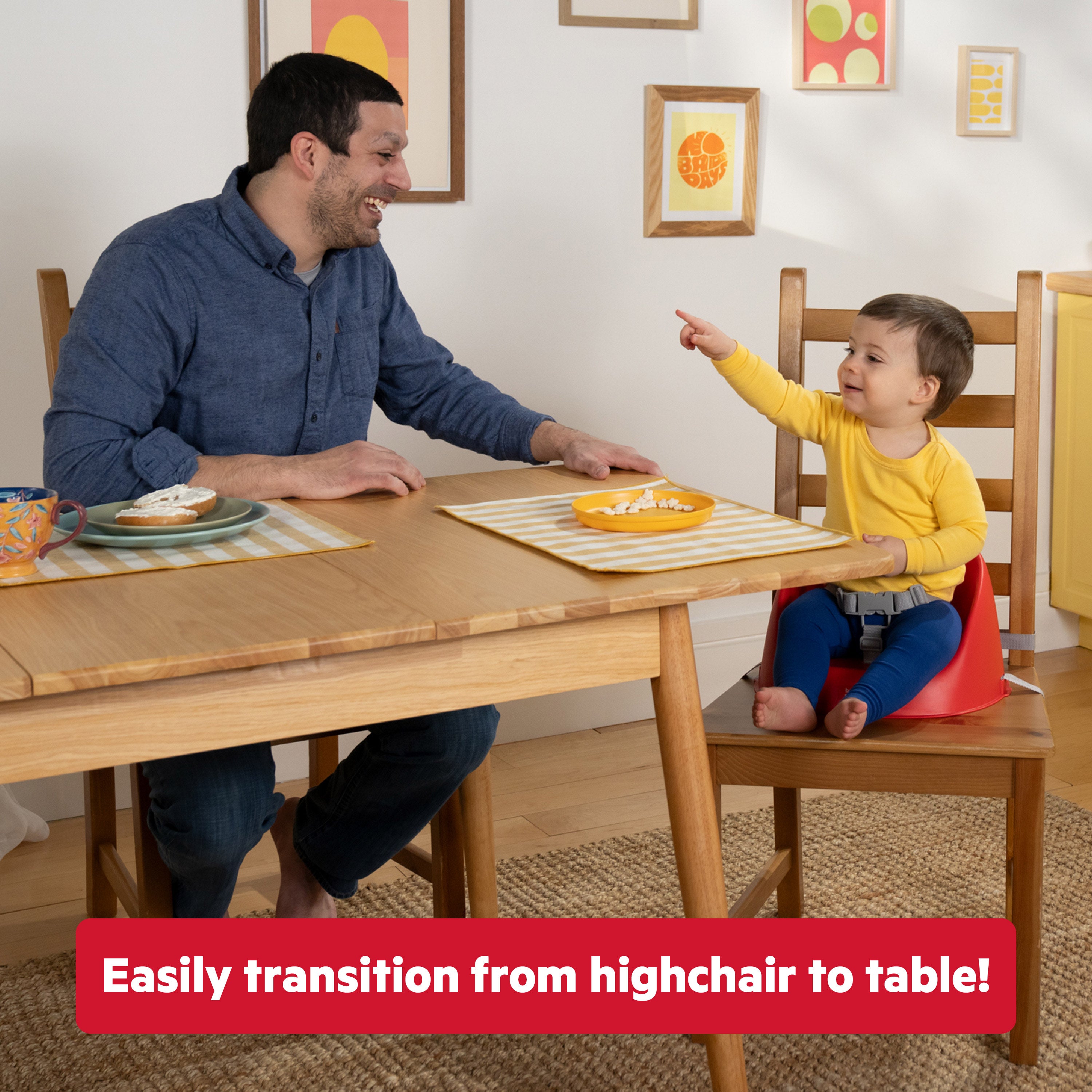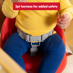 • Easy-to-clean booster designed with a wipeable plastic base and washable removable straps to tackle mealtime spills