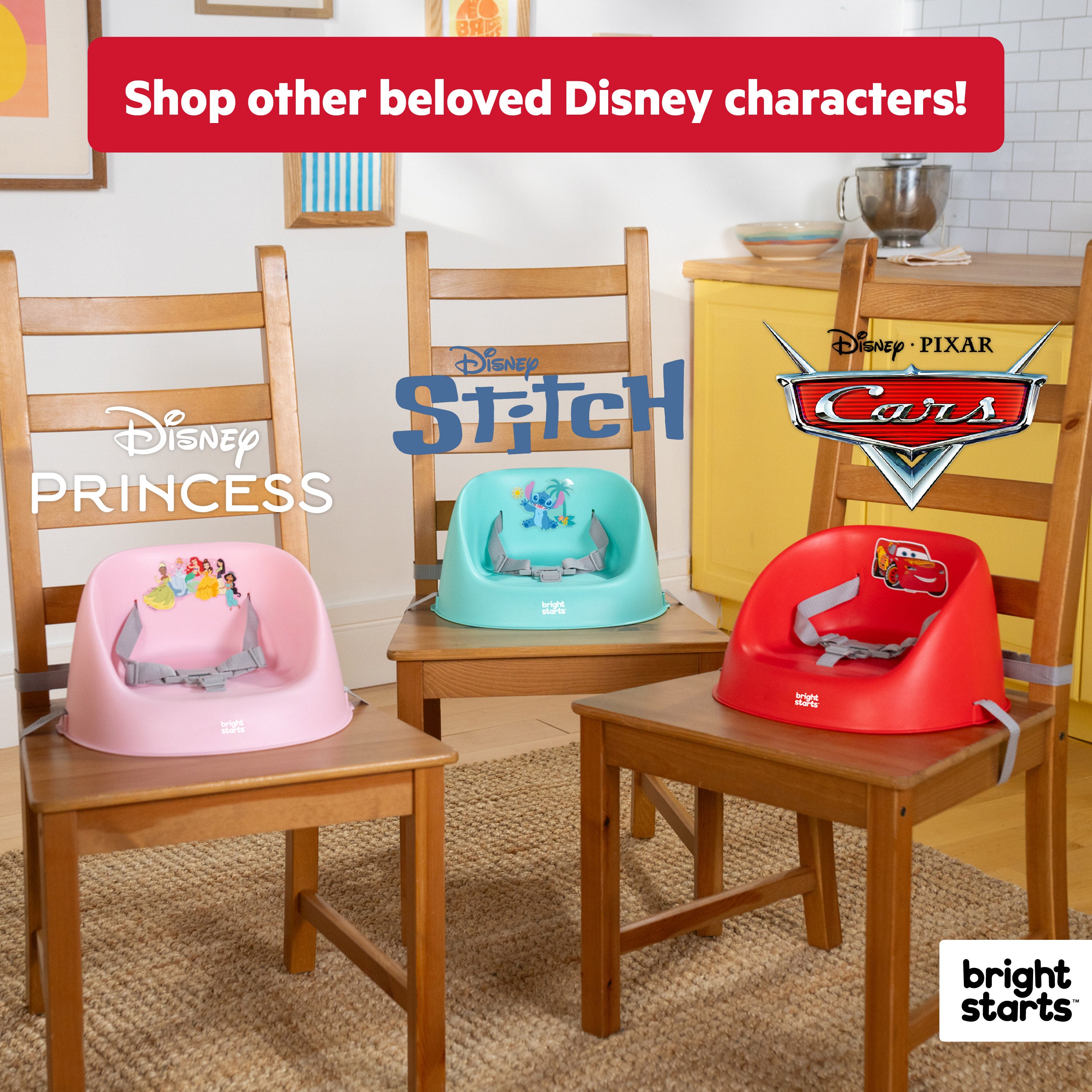 • Keep your little one safe during mealtime with included 3-point safety harness; bright red design with Disney Pixar Cars Lightning McQueen on seat back