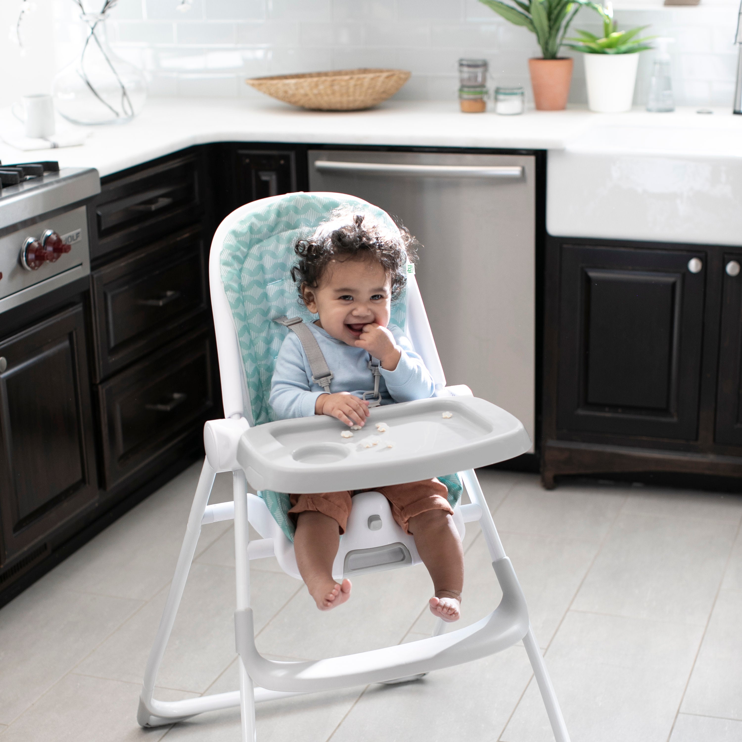Some foods are love at first bite. And as you know, first love is messy. We’re here to wipe away the puree. We designed the Yummity Yum™ easy-to-clean high chair with a dishwasher safe tray. Just unlatch and load. How simple is that? The comfortable feeding chair includes a machine washable seat pad and footrest support for happy eating. When tummies are full, this foldable high chair collapses so you can tuck it out of sight. It’s like that applesauce explosion never happened.