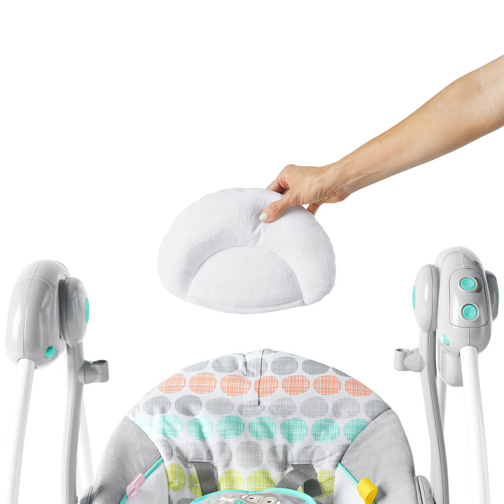 Swing, sway and rock-a-bye baby to more restful moments with the Bright Starts Whimsical Wild Portable Swing. With its 2-position recline, this swing #1 Manufacturer of Baby Entertainment* is sure to feel just right and makes a great baby shower gift. Don’t let its small size fool you – this swing is packed with features. TrueSpeed weight-sensing technology means newborns and infants will feel their same favorite speed, even as they grow. And with WhisperQuiet technology, the only sounds you’ll hear are sweet sighs and babbles. Two smiling toys hang from the easy-to-remove toy bar while soothing Taggies hang along the side of the seat to keep baby in good swinging company. She can tug, rub and feel the silky sensory ribbons while she swings. With ten cheerful melodies, swing time is song time, and an adjustable five-point harness plus a removable head support pillow keep baby snug in the deep comfortable seat. Compact as it is cozy, the lightweight and foldable design makes it easy to pack up this mini baby swing. Easy care washable fabrics. Designed in the USA. From the #1 Manufacturer of Baby Entertainment* (*Circana, US Dollar Sales, Jan-Dec ‘24).