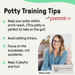Potty training doesn’t have to pause when you’re on the go! This foldable potty seat makes it easy for your little one to keep up their potty skills wherever life takes you. Designed for a universal fit, it works with most round, elongated, D-shape, and open-front toilet seats—reducing the seat size for a more secure, toddler-friendly experience. It’s the easiest potty to fold and tuck away, complete with a water resistant travel bag for clean, discreet storage. An integrated splash guard helps prevent messes (a feature you won’t find on other travel potties), while the non-slip grip keeps the seat steady. With a smooth, one-piece design that wipes clean in seconds, it’s as easy to clean as it is to use. Fold it up in a flash, pack it away, and you’re ready for the next potty break—wherever you are. Dimensions: 11” x 4.75” x 1.3” when folded.