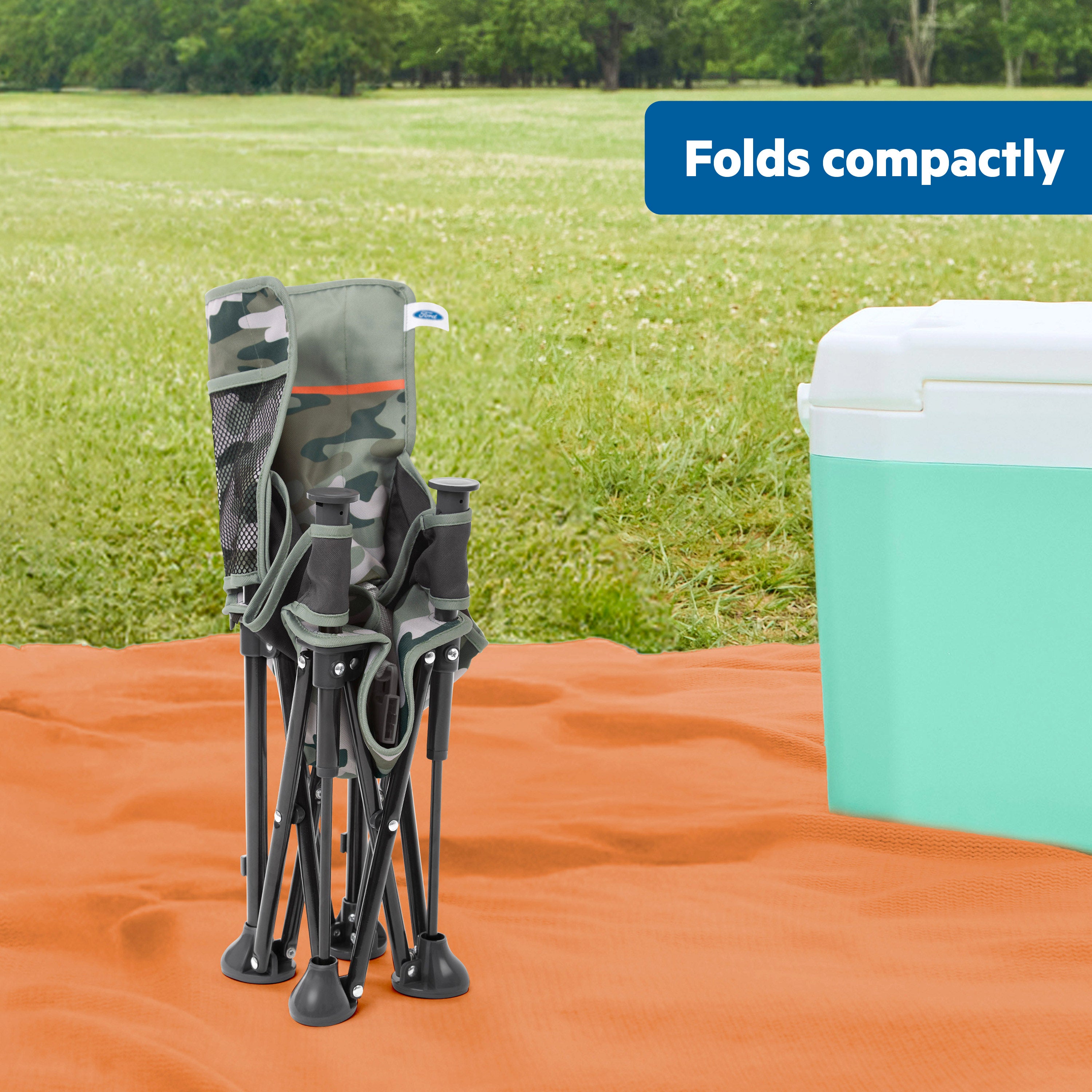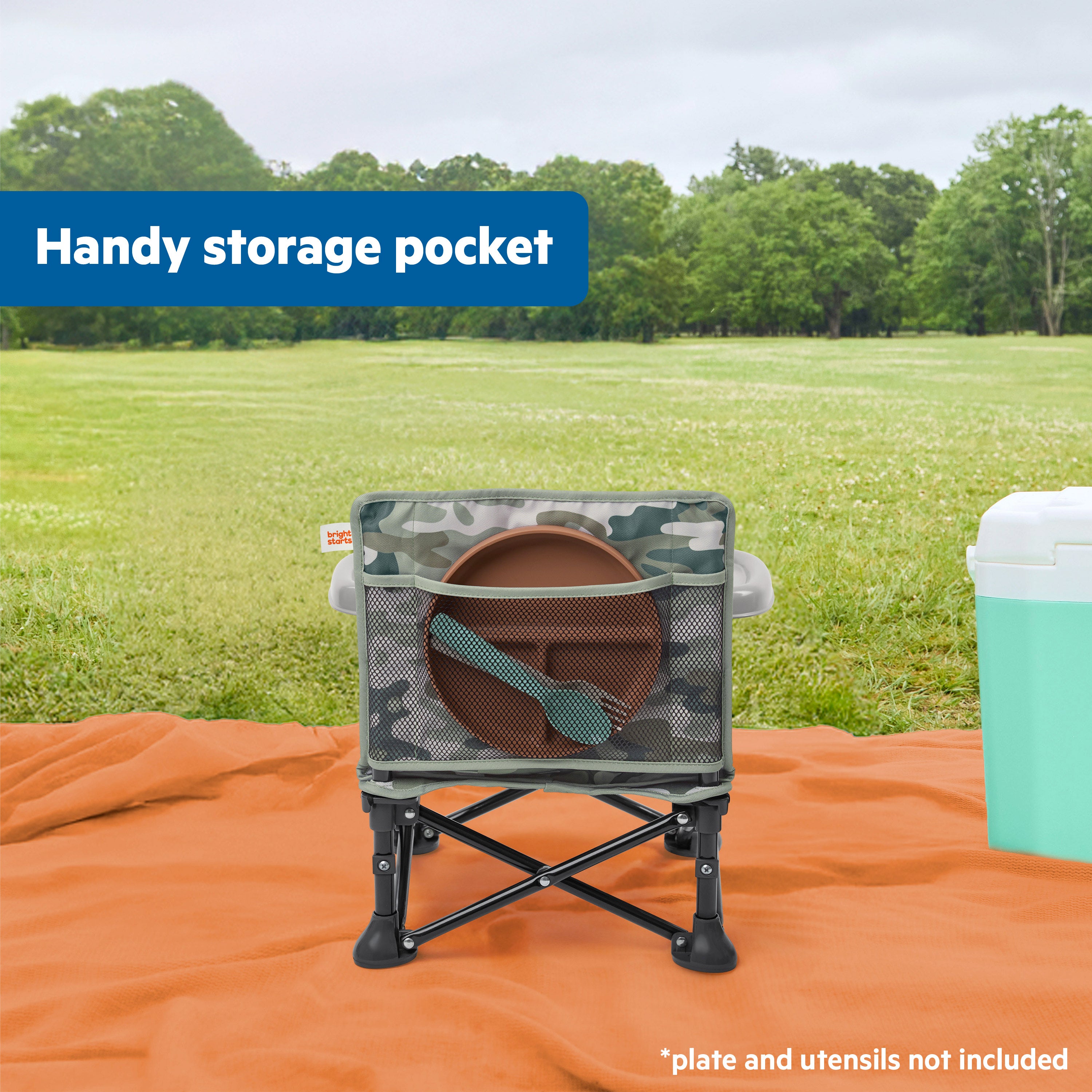 Shift into rugged adventure mode in the Ford Bronco Pop ‘N Sit portable booster seat from Bright Starts, with over 2 million sold! From inside to out, baby to toddler, and mealtime to playtime, this multi-purpose travel booster in Desert Gray camo print offers your little one a secure place to sit - no matter what the day has in store. Features 3 modes of use: floor seat, feeding seat with removable tray, and toddler booster. For babies, attach the seat to an adult chair using the included straps and tray to create a portable feeding seat. For toddlers, use the seat as a booster that can pull up to the table by removing the tray. In floor mode, you can use the Ford Bronco Pop ‘N Sit whenever you need an extra baby seat - picnics, sporting events, or right at home! The rear storage pocket holds your daily essentials. Folds compactly when not in use and includes a carrying bag with shoulder strap. Features a dishwasher safe tray and machine washable seat pad. Dimensions: 14.57" (H) × 15.35" (W) × 15.35" (L) when folded. Made for 6 months to 3 years old or up to 37 lbs.