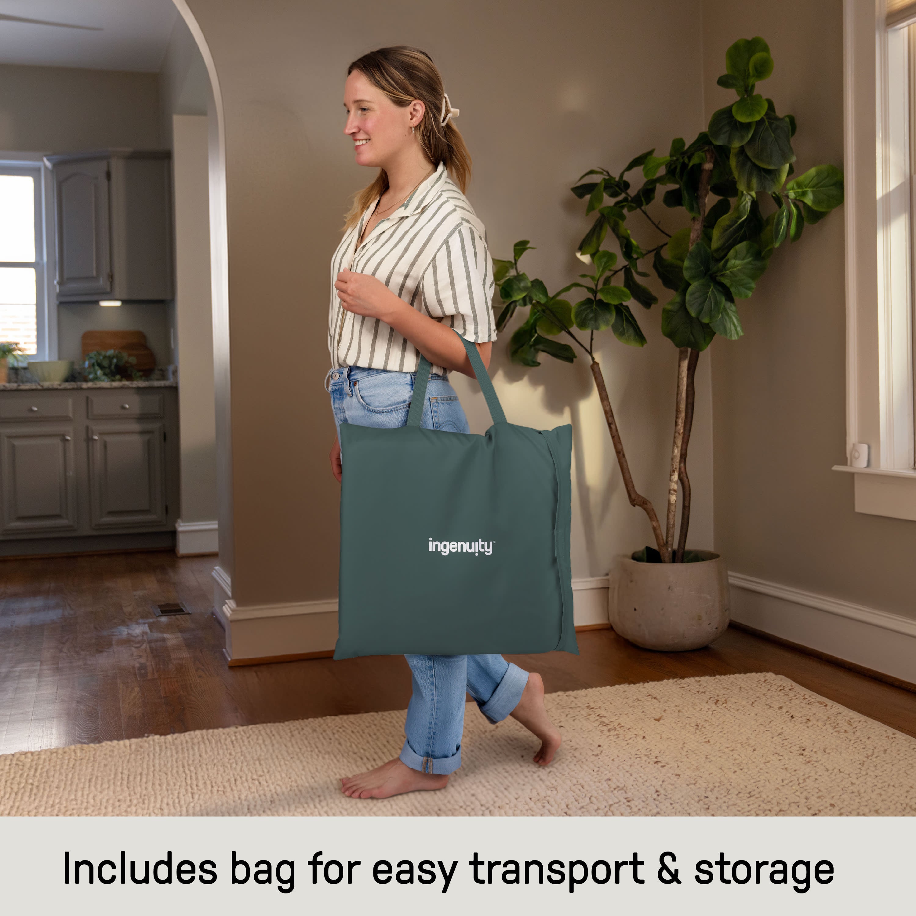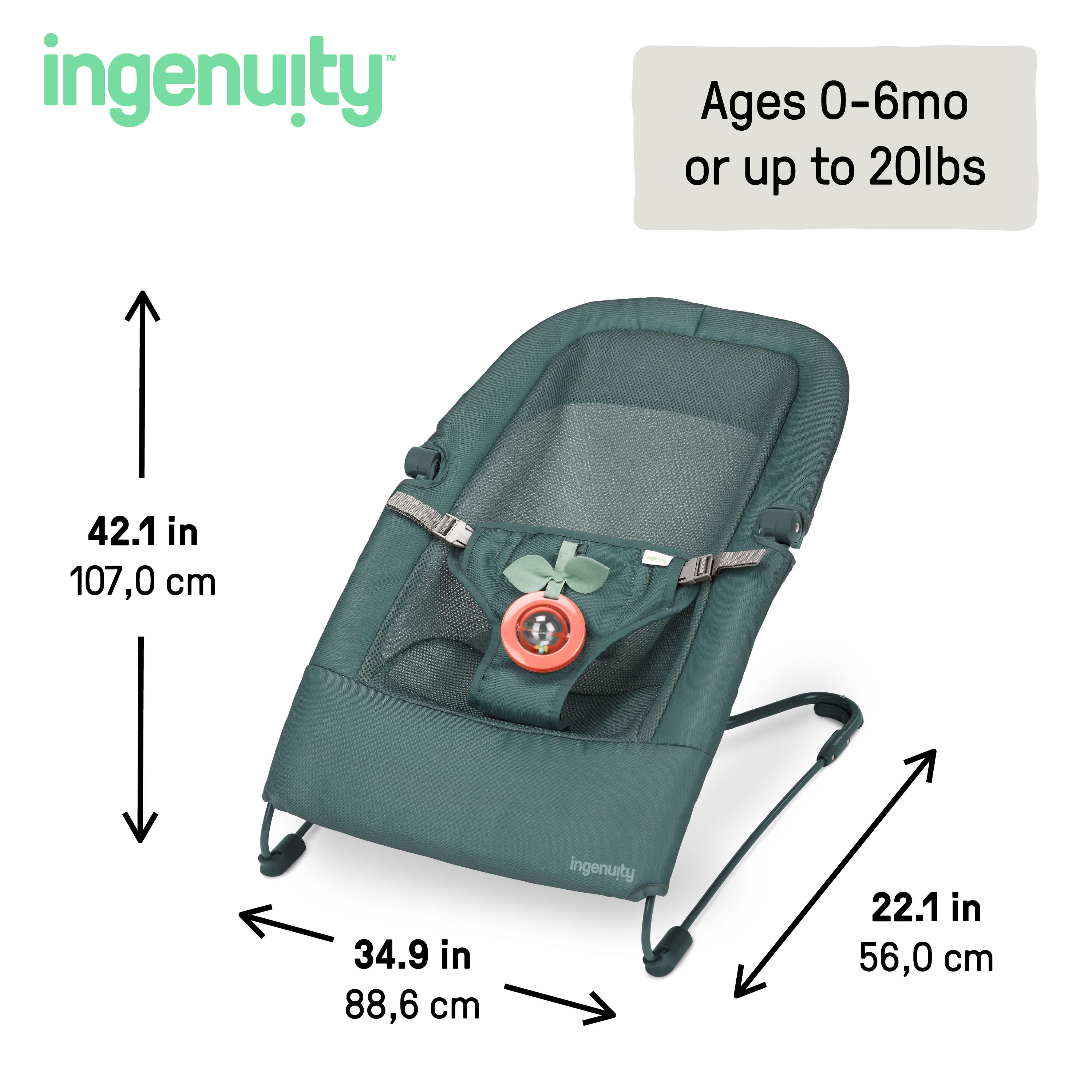 Parenting takes you everywhere, and the Ingenuity Stow & Go Compact Folding Bouncer makes it easier to bring comfort along for the ride. This lightweight bouncer folds flat to slip into a tote or included carry bag, so you’ll always have a spot for baby, whether at home, visiting grandparents, or traveling. The included CalmTouch Vibe-Pod helps little ones relax while giving you a much-needed moment to breathe. Under 5 lbs and simple to set up, the bouncer is designed for families living life in motion. A removable rattle toy adds cheerful playtime, while the secure 3-point harness keeps baby safe and snug. With its slim, modern design, the Stow & Go Bouncer saves space without sacrificing comfort, because every parent deserves products that fit seamlessly into real life.