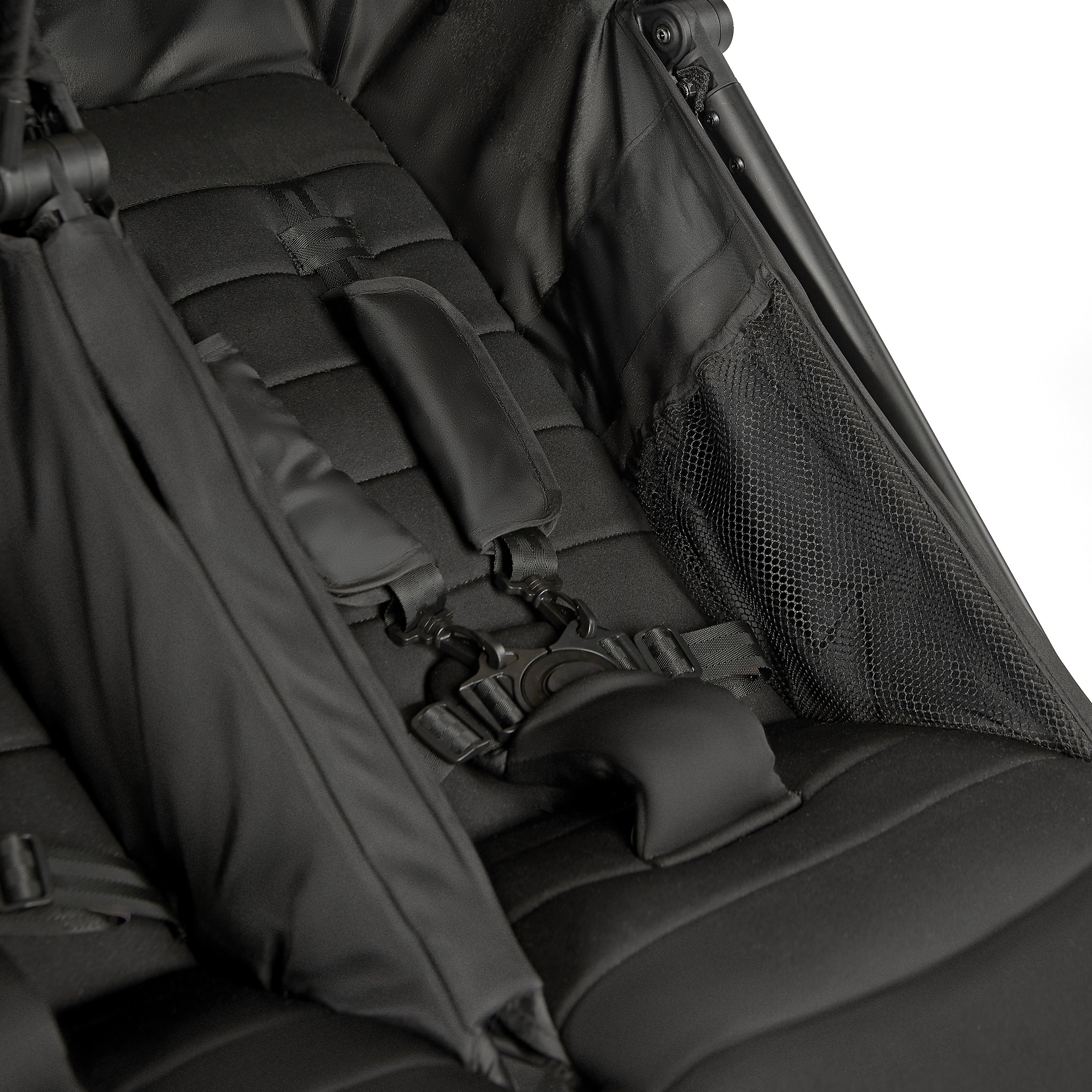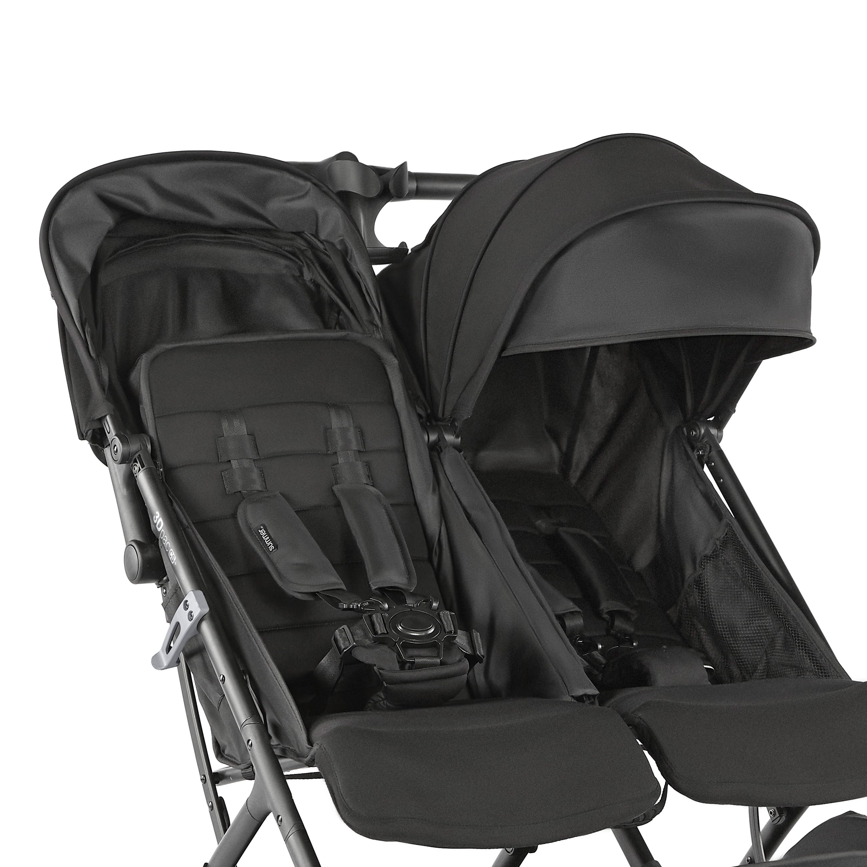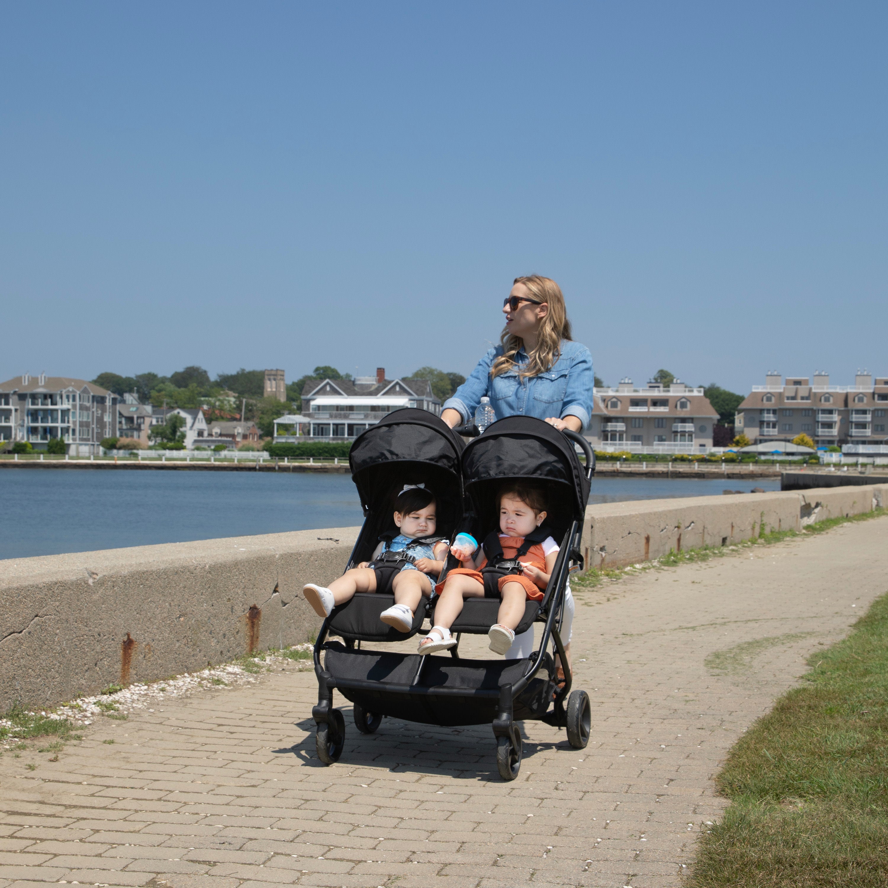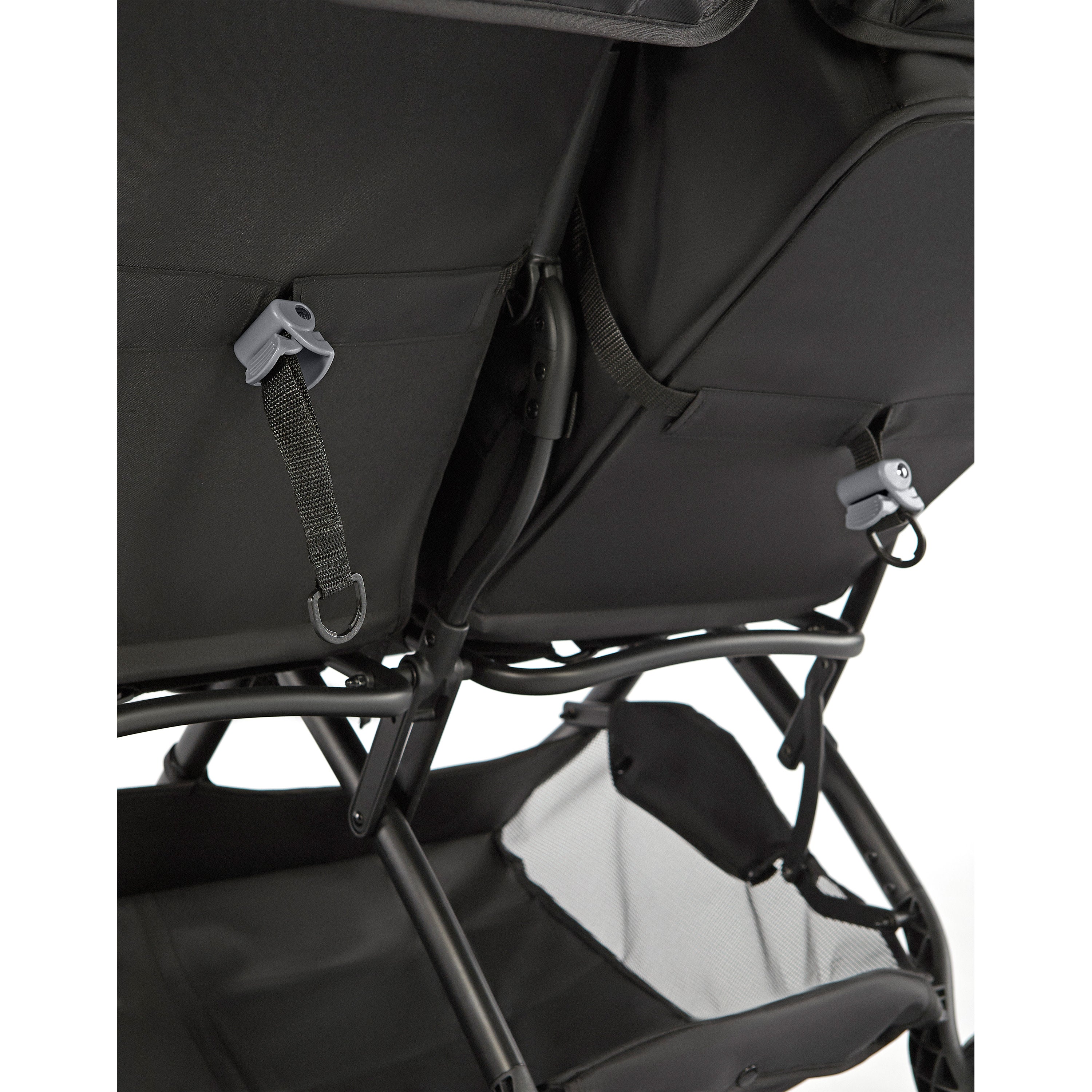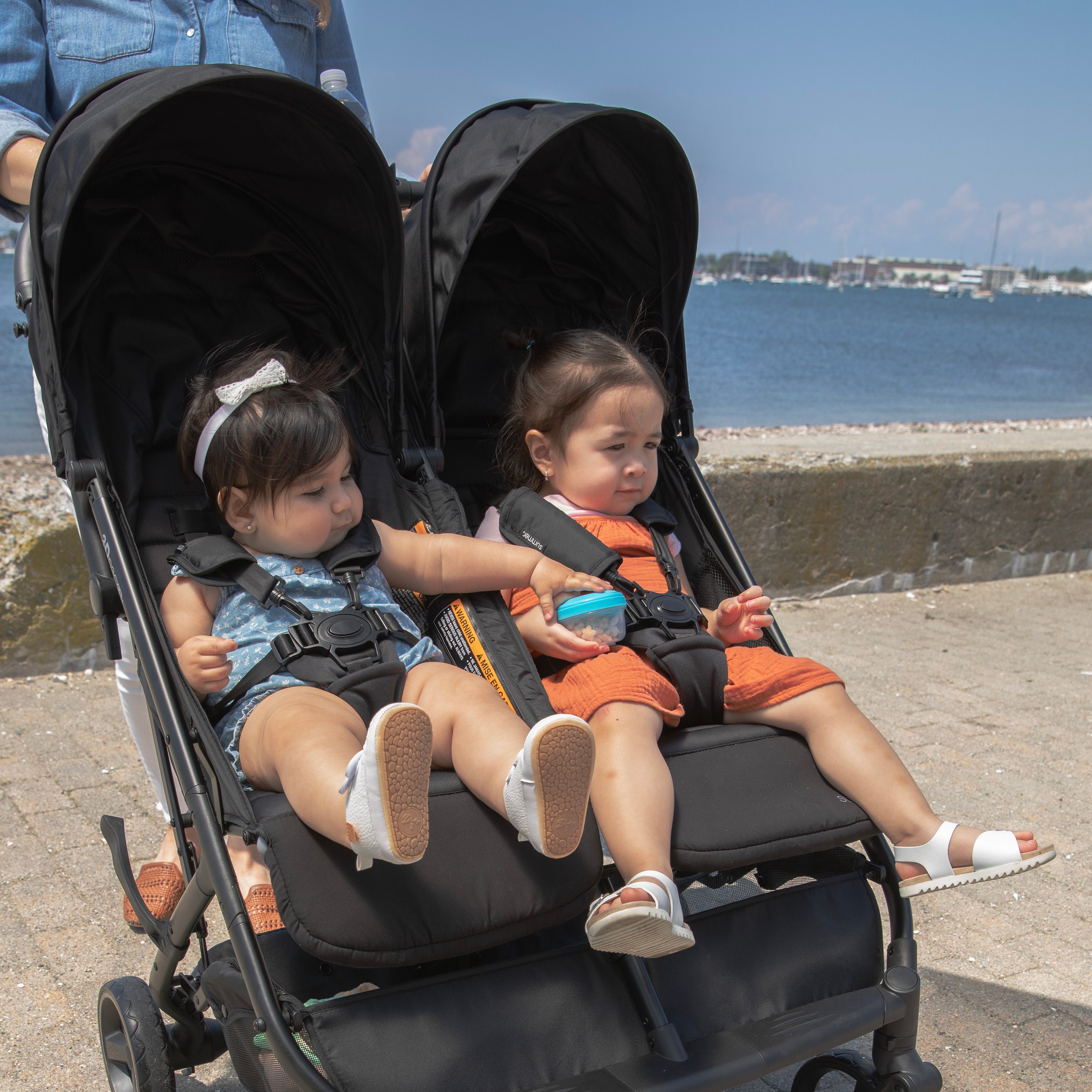 - MULTI-POSITION RECLINE - Keep your little ones comfortable with the multi-position seat recline & leg rests. Plus, the adjustable extra-large canopies have a flip out sun visor & peekaboo window. Maximum weight for this double stroller: 50 lbs per seat.