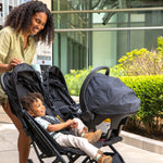 The Summer by Ingenuity 3Dpac CS+ Double Stroller allows your children to ride side by side. This lightweight stroller rides smoothly and folds fast for travel and storage ease. From a newborn stroller (through use of your car seat) to a toddler stroller, this stroller grows with your little ones and allows for years of use. You'll love the sleek compact fold design with numerous built-in features, all thoughtfully added for your convenience. The 3Dpac CS+ Double Stroller comes fully loaded with all the bells and whistles of a full-sized stroller and more, including oversized canopies with pull out sun visors and peek-a-boo windows, extra storage, multi-position individual seat reclines and much more. Plus, it’s loaded with parent features. May be used at infancy through the use of your car seat, or at approximately 6 months, when your baby is sitting in the stroller seat independently (up to 50 lbs.)
