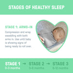 - This swaddle is part of Stage 1 in the SwaddleMe Stages of Sleep, made for newborns who aren't rolling over yet and like to be swaddled with their arms in
