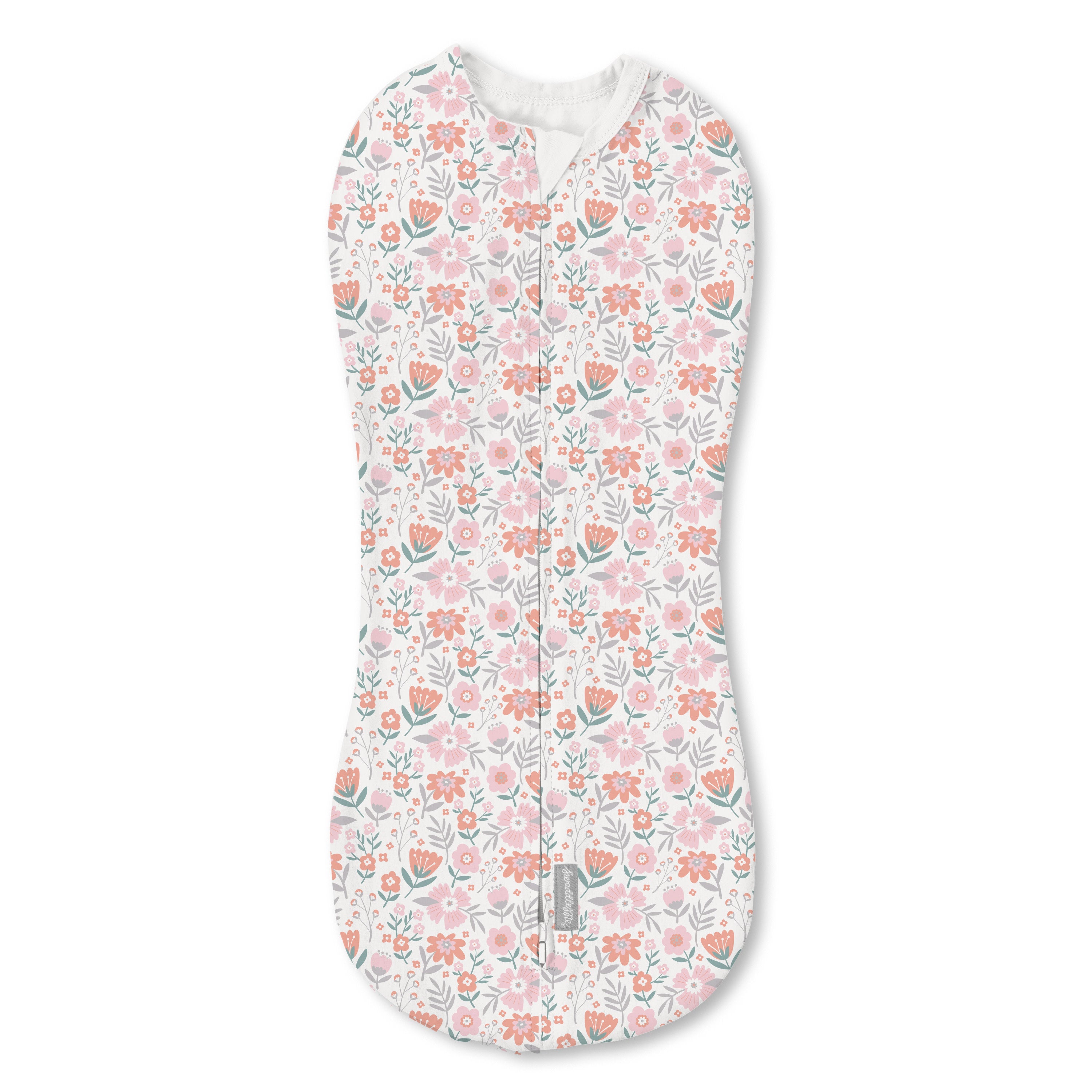 Keep your baby calm and comforted with the SwaddleMe by Ingenuity Pod in newborn. This swaddle fits preemies and other babies ages 0-2 months, 5-12 pounds, and up to 26 inches long. This swaddle creates a cozy, womb-like feeling for baby – no wrapping required. Simply zip your preemie or newborn into this compression swaddle for secure comfort. The snug fit helps prevent the startle reflex that can wake baby. Diaper changes can be stressful, but the two-way zipper on this baby swaddle makes diaper changes a breeze! Now you can change diapers quick and quietly without fully unswaddling. This soft swaddle blanket is made of durable fabric (93% cotton, 7% spandex) and is machine-washable for easy cleaning. This baby swaddle is part of Stage 1 in the SwaddleMe Stages of Sleep, made for newborns who aren't rolling over yet and like to be swaddled with their arms in. When baby starts showing signs of rolling, transition to Stage 2. The SwaddleMe by Ingenuity Pod is a great addition to any baby shower registry!